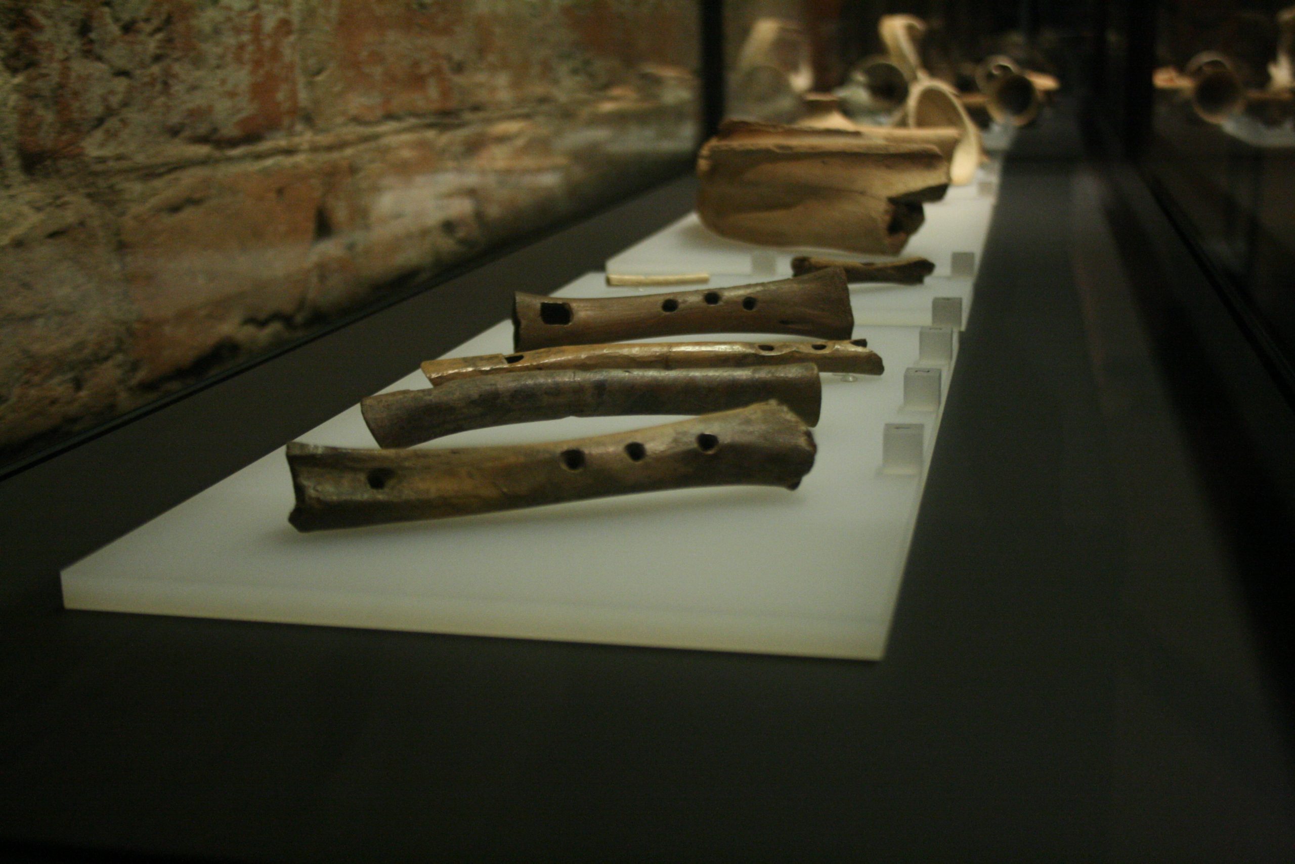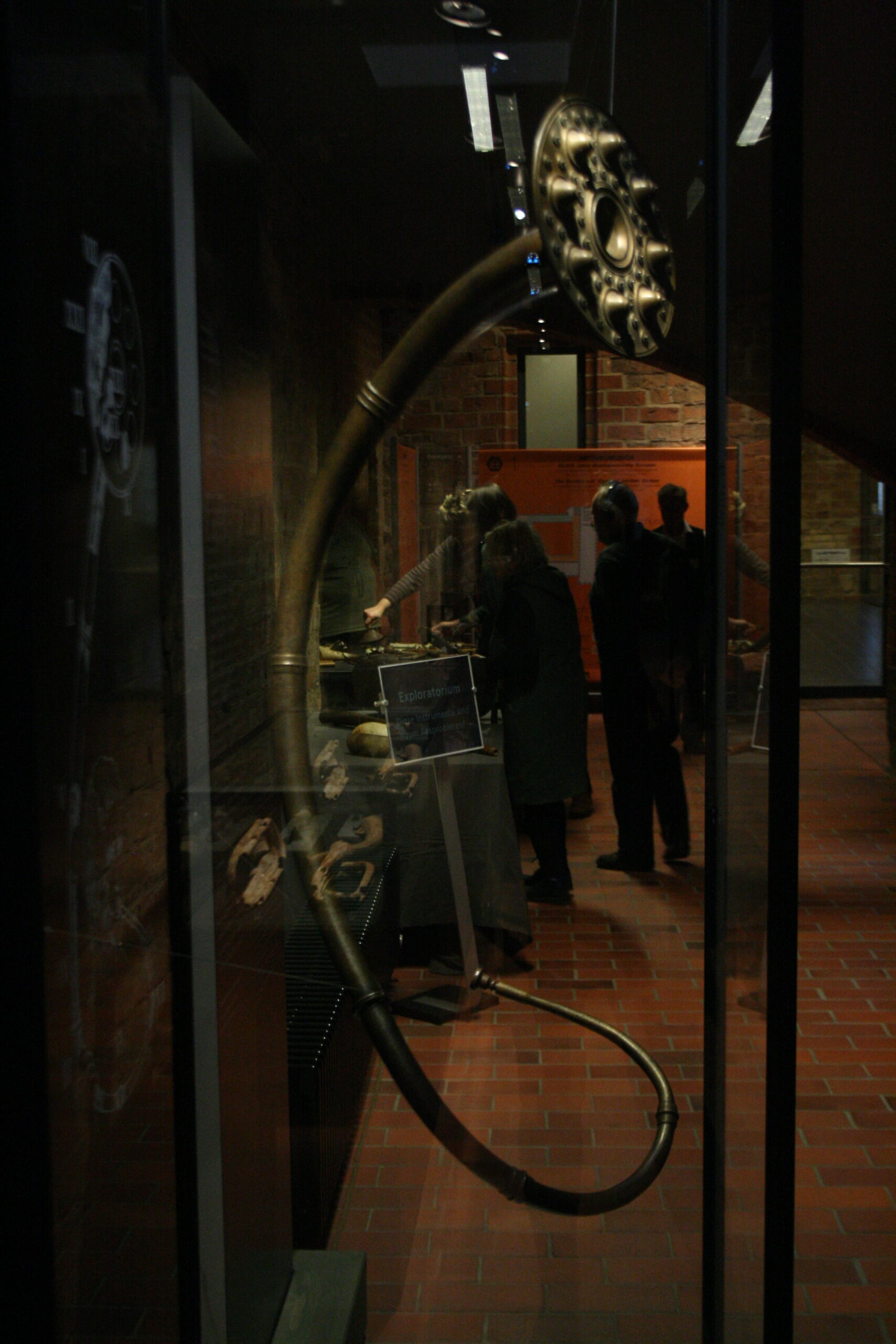 Współczesne trendy w muzealnictwie stawiają na wystawy interaktywne, czego trzymali się twórcy projektu. Cóż to może oznaczać w przypadku historii muzyki? Archaeomusica to nie jest zwykła ekspozycja zabytkowych instrumentów. Postawiono tu na doświadczenie. W praktyce oznacza to mnóstwo… zabawy. Po pierwsze każdy z oglądanych instrumentów mamy okazję usłyszeć dzięki audio przewodnikom. Część z eksponatów dodatkowo można samodzielnie chwycić do ręki i spróbować na nich zagrać. Spokojnie, nie są to prawdziwe zabytki, a jedynie repliki wykonane na ich podstawie. Dzięki temu każdy zwiedzający ma możliwość przekonać się np. o tym, jak trudno zadąć w bawoli róg czy konchę. Mi niestety średnio to wyszło, jednak poczułam ogromną dumę, gdy w moich rękach zabrzmiała pełnym głosem wikińska trąba drewniana (grupa turystów aż podskoczyła, gdy dźwięk obił się o gotyckie mury krużganków!). Wypróbować można również liry z Sutton Hoo i z Ur, kościane piszczałki, różnego rodzaju idiofony… Największym dla mnie zaskoczeniem było chyba to, jak brzmi litofon wykonany z krzemiennych wiórów. Na studiach archeologicznych każdy student uczy się o tego rodzaju narzędziach, ale kto by pomyślał o akustycznym ich zastosowaniu…!