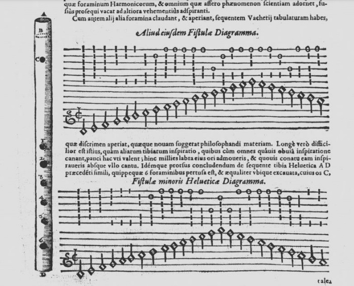 Martin Agricola i Praetorius nazywali te instrumenty wprost Schweitzerpfeifen i Feldpfeifen. Praetorius w swym traktacie „Syntagma Musicum” z lat 1614-1620 zamieścił dwie ryciny wyobrażające Schweitzerpfeifen: jedna z nich prezentuje instrument o długości dwóch stóp, druga zaś przedstawia dwa flety o długościach jednej stopy oraz dziesięciu cali.